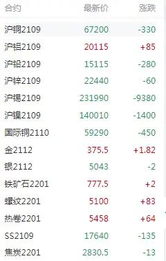 有色金屬漲跌不一 部分金屬修復(fù)夜間跌幅