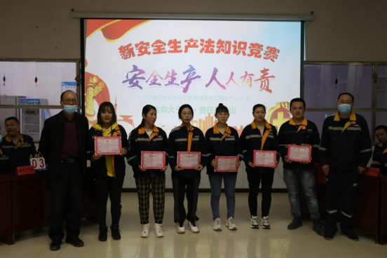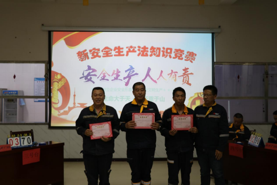 為鞏固宣貫成果,特別是提高全體員工對《新安法》的了解,提高員工安全意識,公司舉行了《新安法》知識競賽,十個(gè)隊(duì)伍參加了比賽,經(jīng)過初賽和復(fù)賽,一等獎(jiǎng)獲得者:選廠3隊(duì),二等獎(jiǎng)獲得者:財(cái)務(wù)行政人力資源聯(lián)隊(duì),質(zhì)檢化驗(yàn)聯(lián)隊(duì),三等獎(jiǎng)獲得者:采礦1隊(duì),采礦2隊(duì),選礦1隊(duì),還有四個(gè)隊(duì)伍榮獲紀(jì)念獎(jiǎng)。本次安全知識競賽使公司《新安法》宣貫活動進(jìn)一步推向了深入,提高了員工的安全防范意識和應(yīng)對事故的處理能力,豐富了員工的業(yè)余文化生活,為進(jìn)一步落實(shí)安全生產(chǎn)責(zé)任制,有效防止安全事故的發(fā)生提供了有利保障。