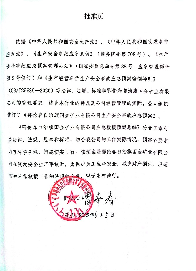 鄂倫春自治旗國金礦業(yè)有限公司生產(chǎn)安全事故應(yīng)急預(yù)案